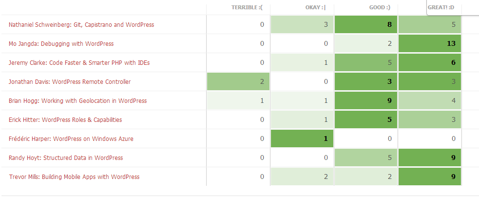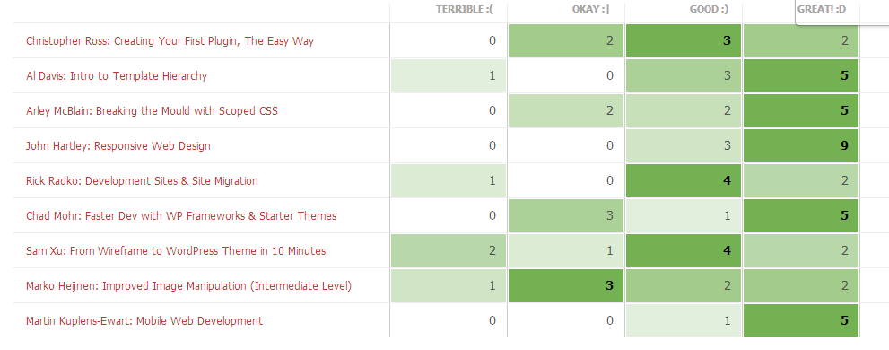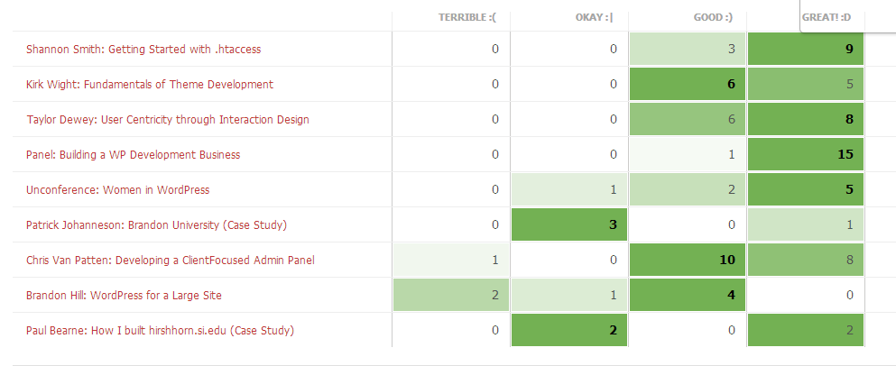 We sold out in September, we sold out in November. Combined, we had nearly 600 registrants for 2012, with folks coming in from around the globe. (A shout out to our brothers-in-WP from Montreal, Quebec!)